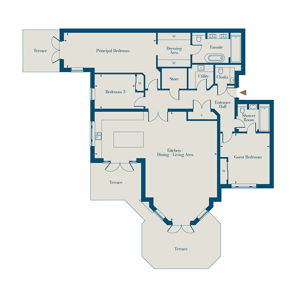 | Principal Bedroom | 7.77m x 3.37m | 25'6" x 11'0" |