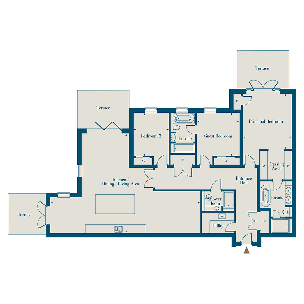 3 bedroom ground floor apartment with 3 bathrooms